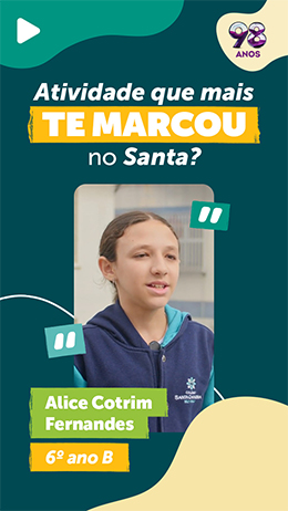 Ressaltar os valores que formam cada estudante é estar presente nos anos fundamentais para a sua construção, oferecendo metodologias diversificadas, ambientes interativos e estímulos para a elaboração de seus projetos de vida. No Santa, valorizamos as interações, a cooperação, as atitudes de solidariedade e o desenvolvimento da autonomia e da autogestão.